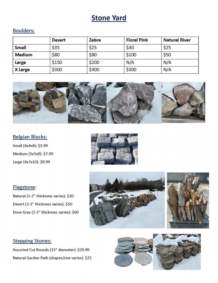 | CT Natural Stone (approx. 1.35 tons) | $120 | $60 |